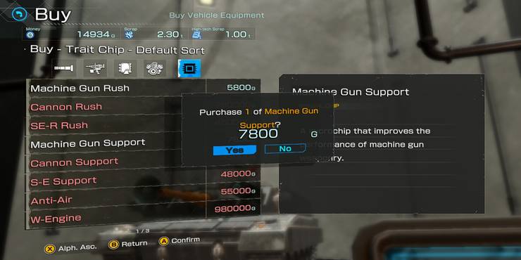Melengkapi suku cadang dan senjata untuk kendaraan Anda dimulai di Sortie. Pertama, buka menu Modifikasi Kendaraan untuk membuka tunggangan Anda dan menetapkannya untuk meriam, senapan mesin, atau senjata S-E. Demikian pula, membuka soket kendaraan memungkinkan mereka untuk dilengkapi dengan Trait Chips.